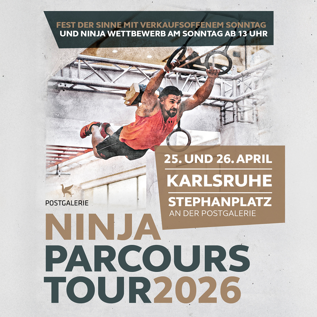 Action pur auf dem Stephanplatz Am 25. und 26. April 2026 heißt es in Karlsruhe wieder: Mitmachen, ausprobieren und Spaß haben! Im Rahmen des Fest der Sinne erwartet die Besucher auf dem Stephanplatz vor der Postgalerie ein ganz besonderes Highlight: die Ninja-Parcours Tour 2026.